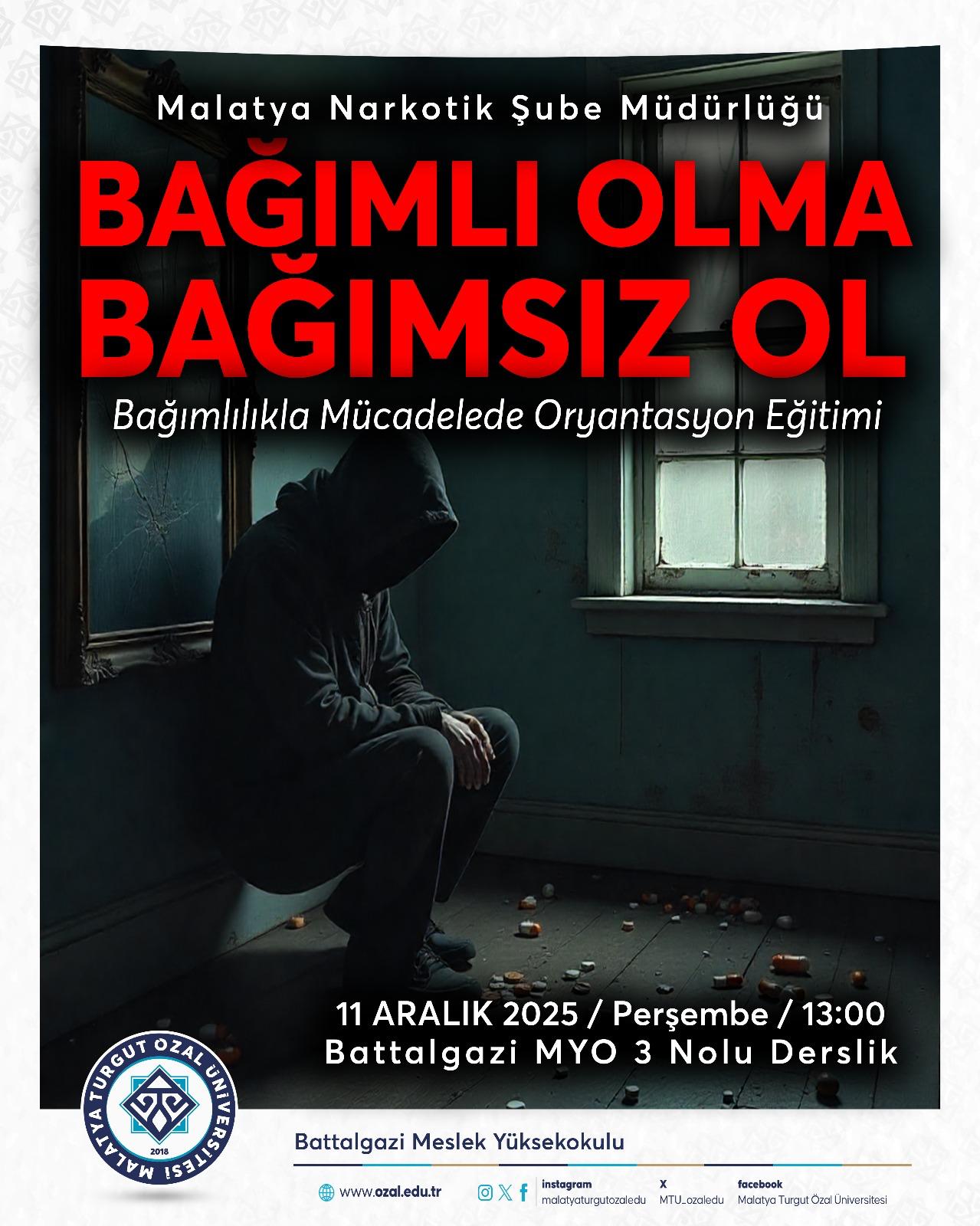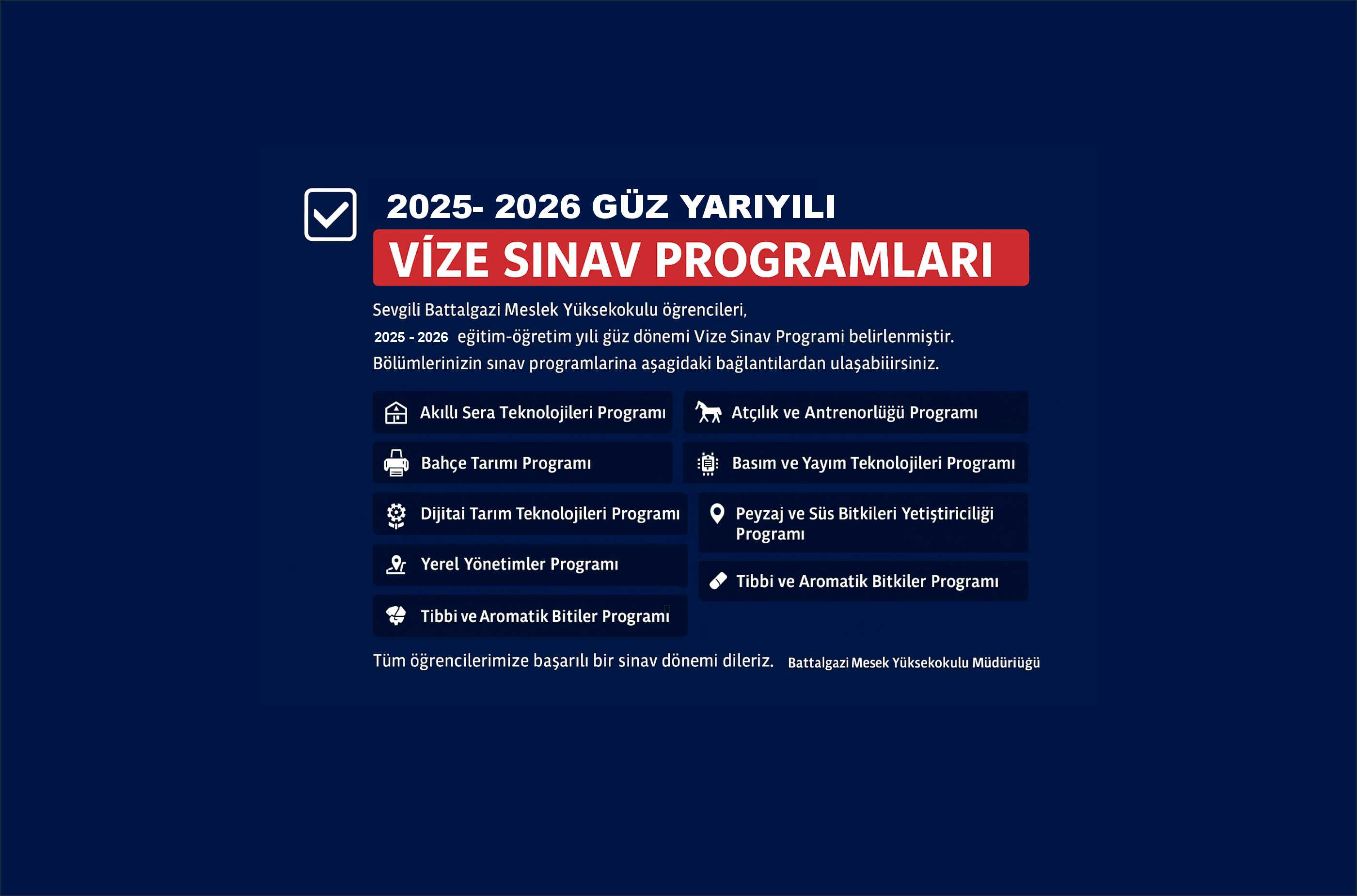 2025–2026 Eğitim-Öğretim Yılı Güz Yarıyılı Tek Ders Sınavı, 30 Ocak 2026 Cuma günü saat 14.00’te, Derslik 4’te yapılacaktır.