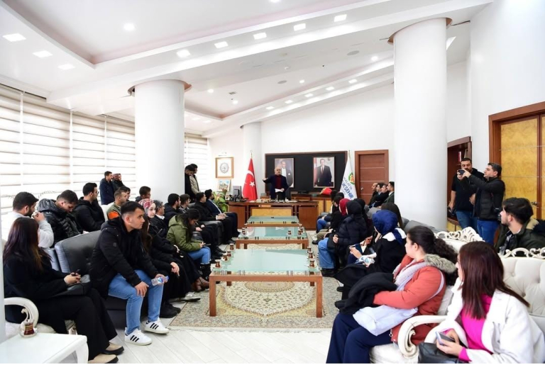 Malatya Turgut Özal Üniversitesi Battalgazi Meslek Yüksekokulu Yönetim ve Organizasyon Bölümü Yerel Yönetimler Programı öğrencilerimiz Öğretim Görevlisi Cumali AYDOĞAN önderliğinde Malatya Büyükşehir Belediyesi kasım ayı meclis çalışmalarına katılarak, Malatya Büyükşehir Belediye Başkanı Sami ER'i ziyaret ettiler. Belediyecilik ile ilgili sorular yönelten öğrencilerimizin sorularını cevaplayan Büyükşehir Belediye Başkanı Sami ER öğrencilerimize nasihatlerde bulunup deneyimlerini paylaştı.